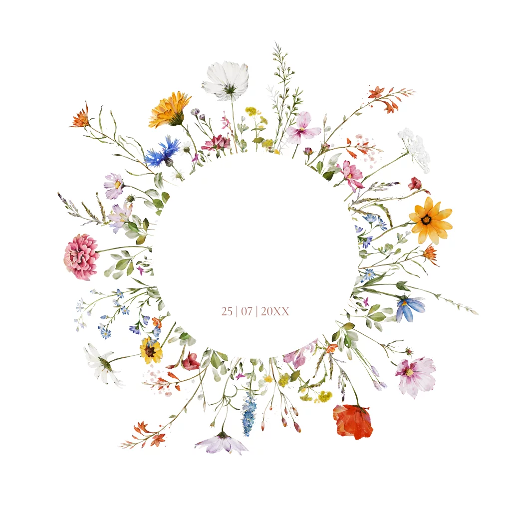 Vormsel uitnodiging voor een meisje wit met zomerse watercolour bloemen en goudfolie. In de binnenkant kan je een foto toevoegen.