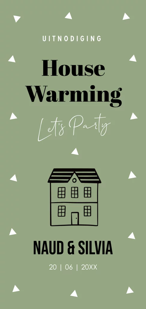 Housewarming uitnodiging groen driehoekjes huisje