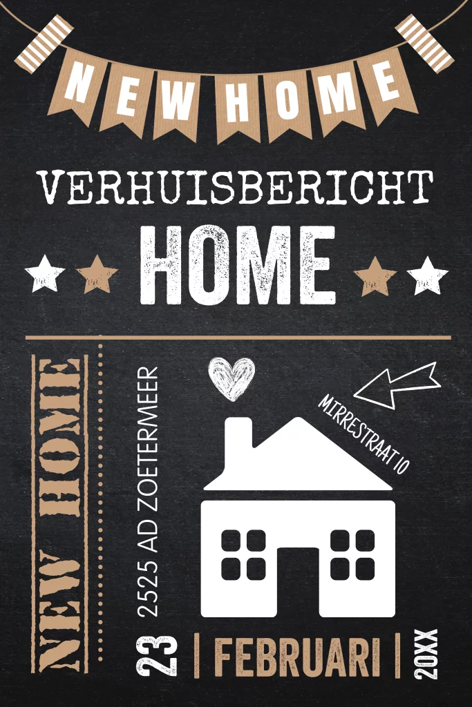 Verhuiskaart zwart tekst huisje slinger New Home