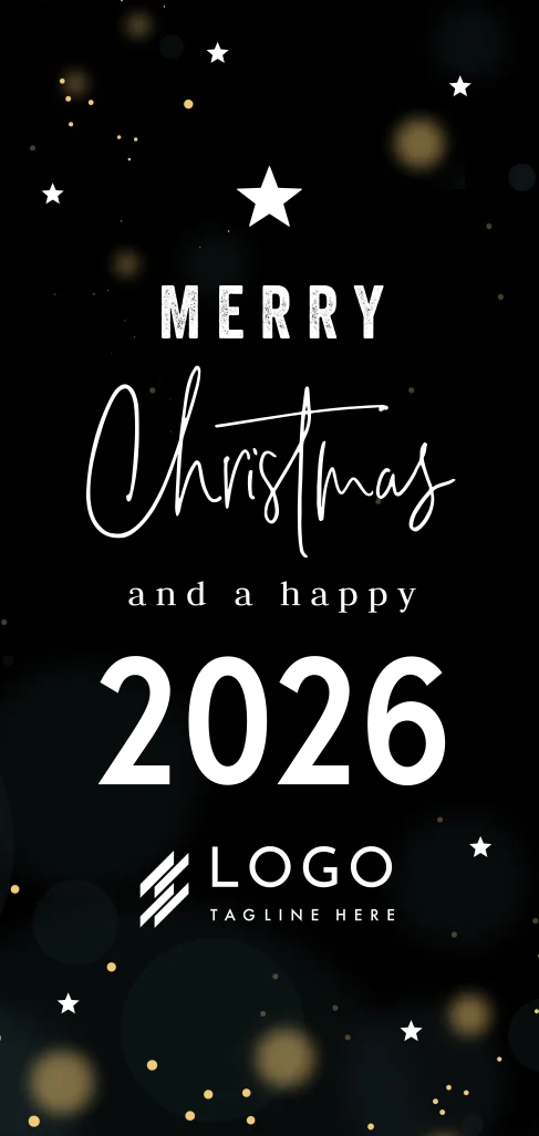 Stijlvolle chique zakelijke kerstkaart zwart logo goudfolie 2026
