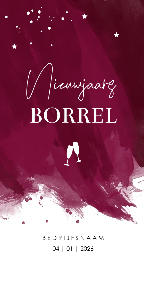 Zakelijke nieuwjaarsborrel uitnodiging langwerpig rood met goudfolie.