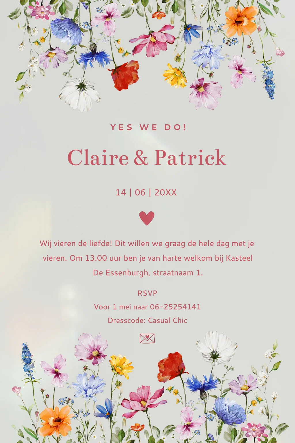 Bij een bijzondere dag, hoort een bijzondere kaart! Hoe mooi is deze acryl trouwkaart met kleurrijke bloemen?