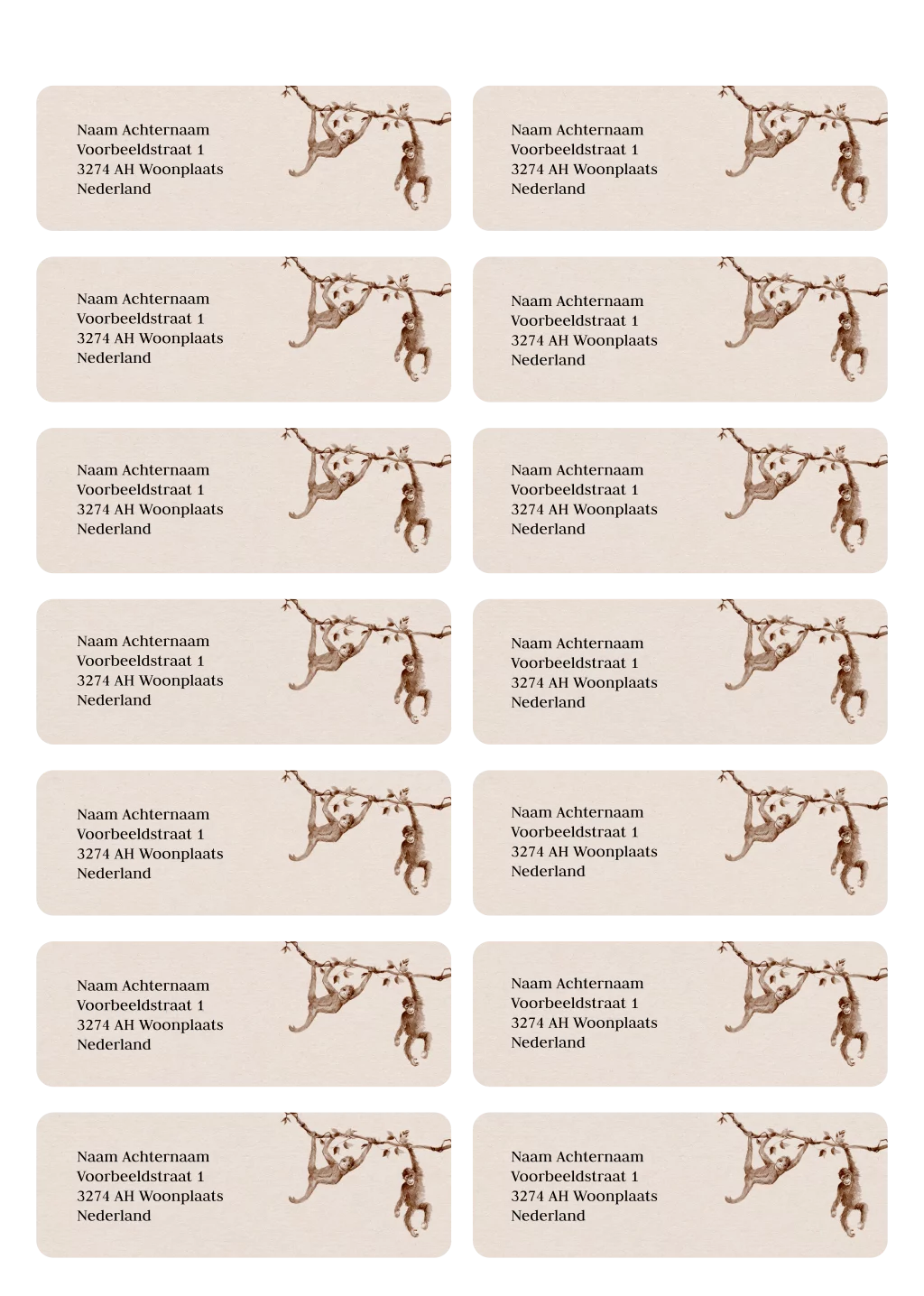 Adressticker aapjes beige | 14 stuks 97X34 mm