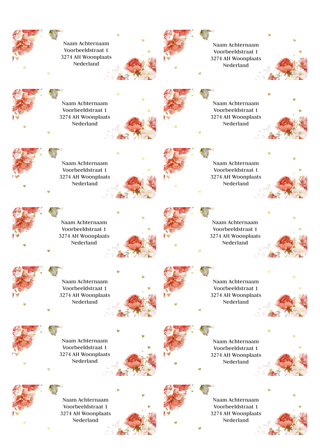 Adresstickers bloemen rood goudfolie