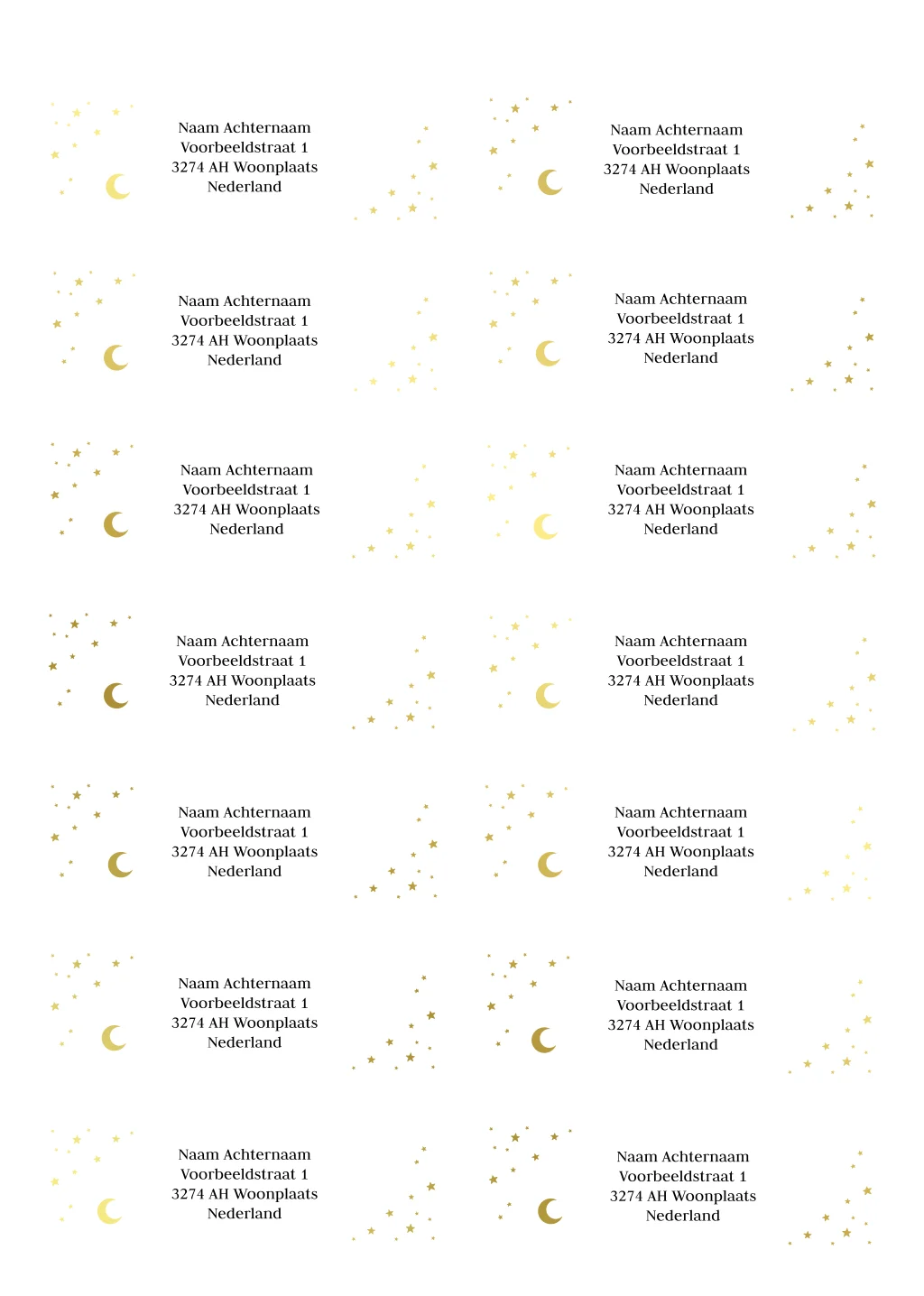 Bijpassende adresstickers in stijl van je geboortekaartje. Naast dat je het design helemaal kan aanpassen, plaats je heel eenvoudig zelf alle adressen op de adresstickers. • 14 adresstickers per vel • formaat van 97x34 mm • ronde hoeken Maak het geboortekaartje helemaal af door de envelop dicht te plakken met een bijpassende sluitzegel!