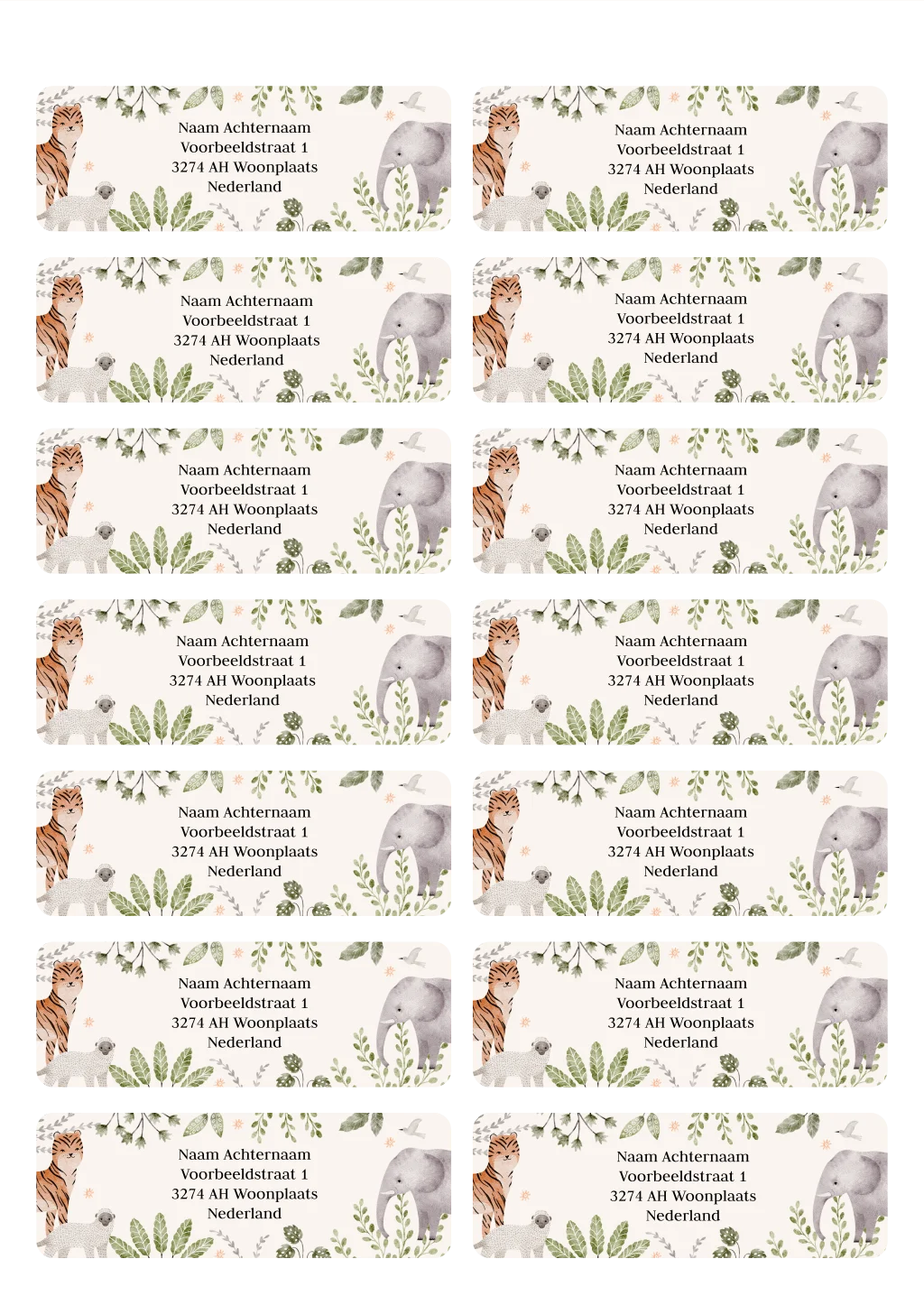 Bijpassende adresstickers in stijl van je geboortekaartje. Naast dat je het design helemaal kan aanpassen, plaats je heel eenvoudig zelf alle adressen op de adresstickers. • 14 adresstickers per vel • formaat van 97x34 mm • ronde hoeken Maak het geboortekaartje helemaal af door de envelop dicht te plakken met een bijpassende sluitzegel!