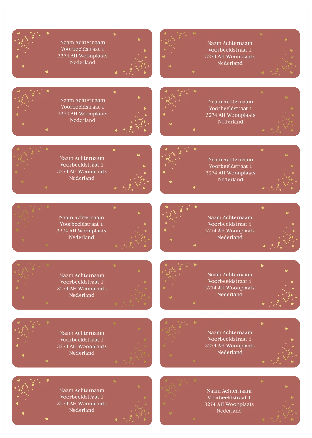 Adressticker roze goudfolie spetters | 14 stuks 97X34 mm