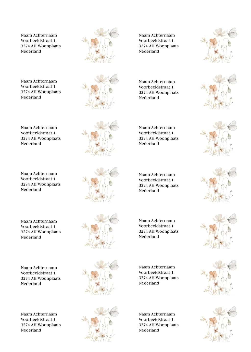 Adressticker wilde bloemen waterverf | 14 stuks 97X34 mm