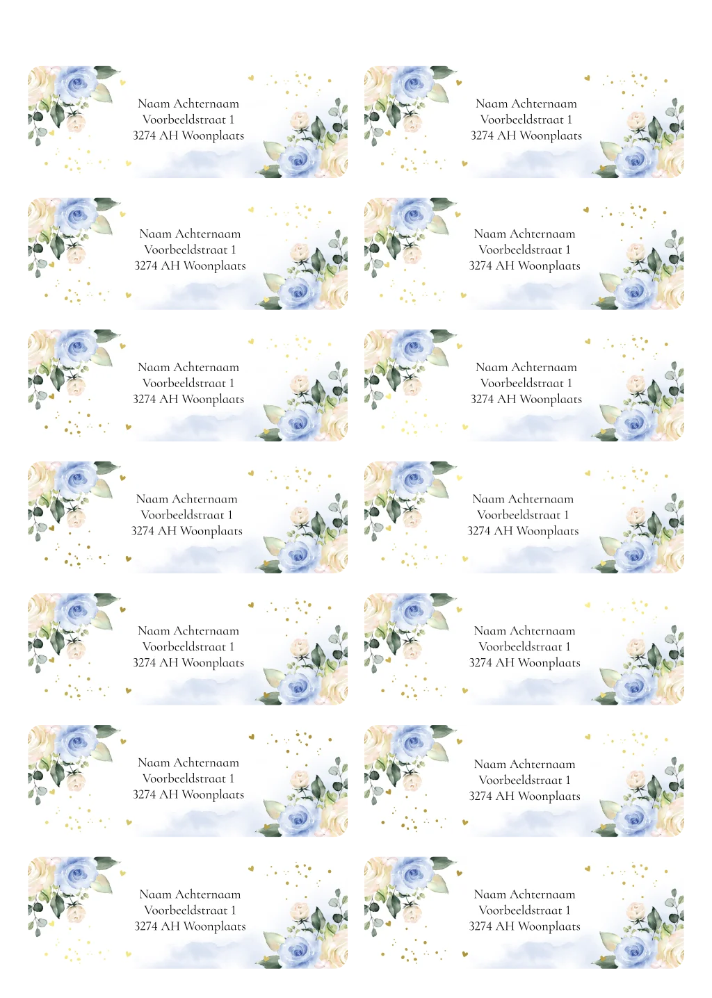 Adresstickers blauw rozen watercolour goudfolie