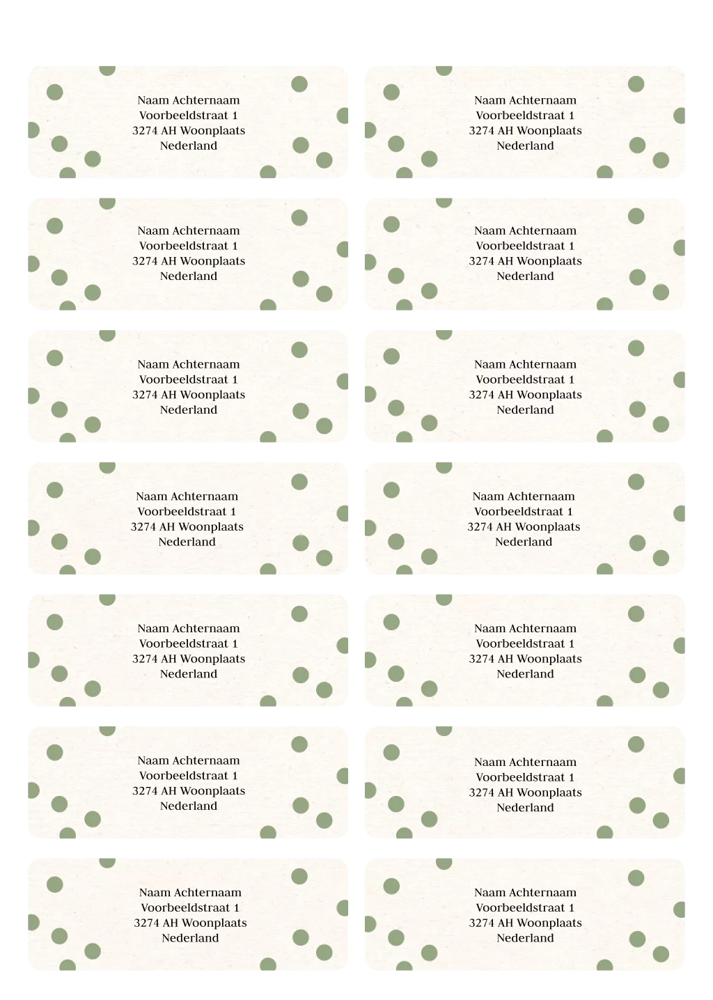 Adresstickers gekleurde dots olijfgroen | 14 stuks 97X34 mm