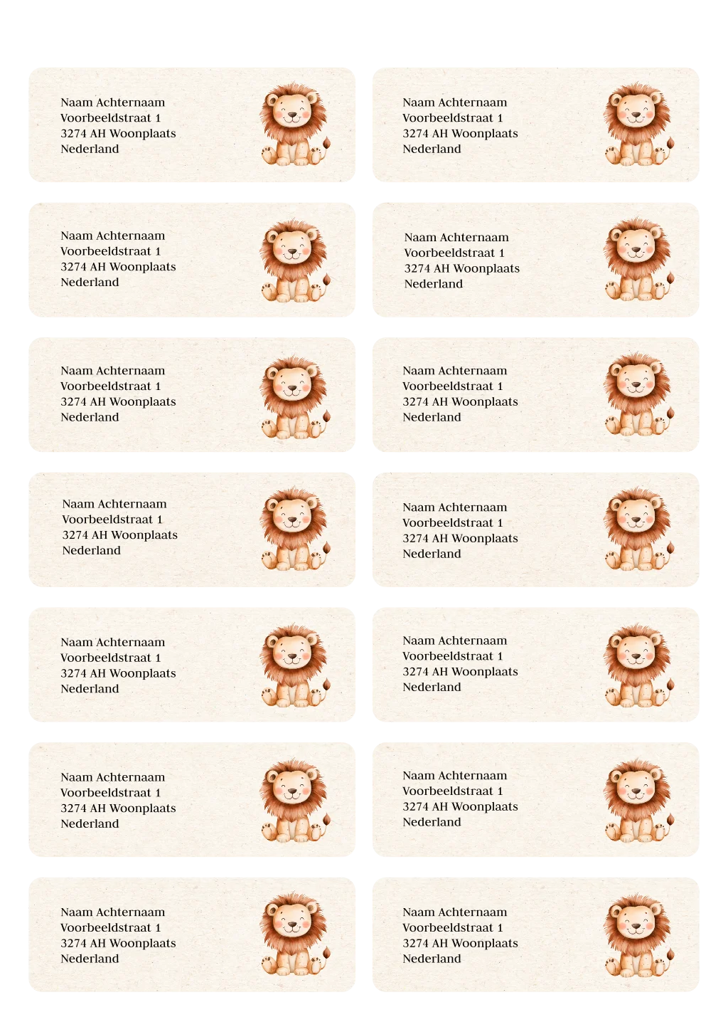 Adresstickers geboortekaartje met leeuwtje