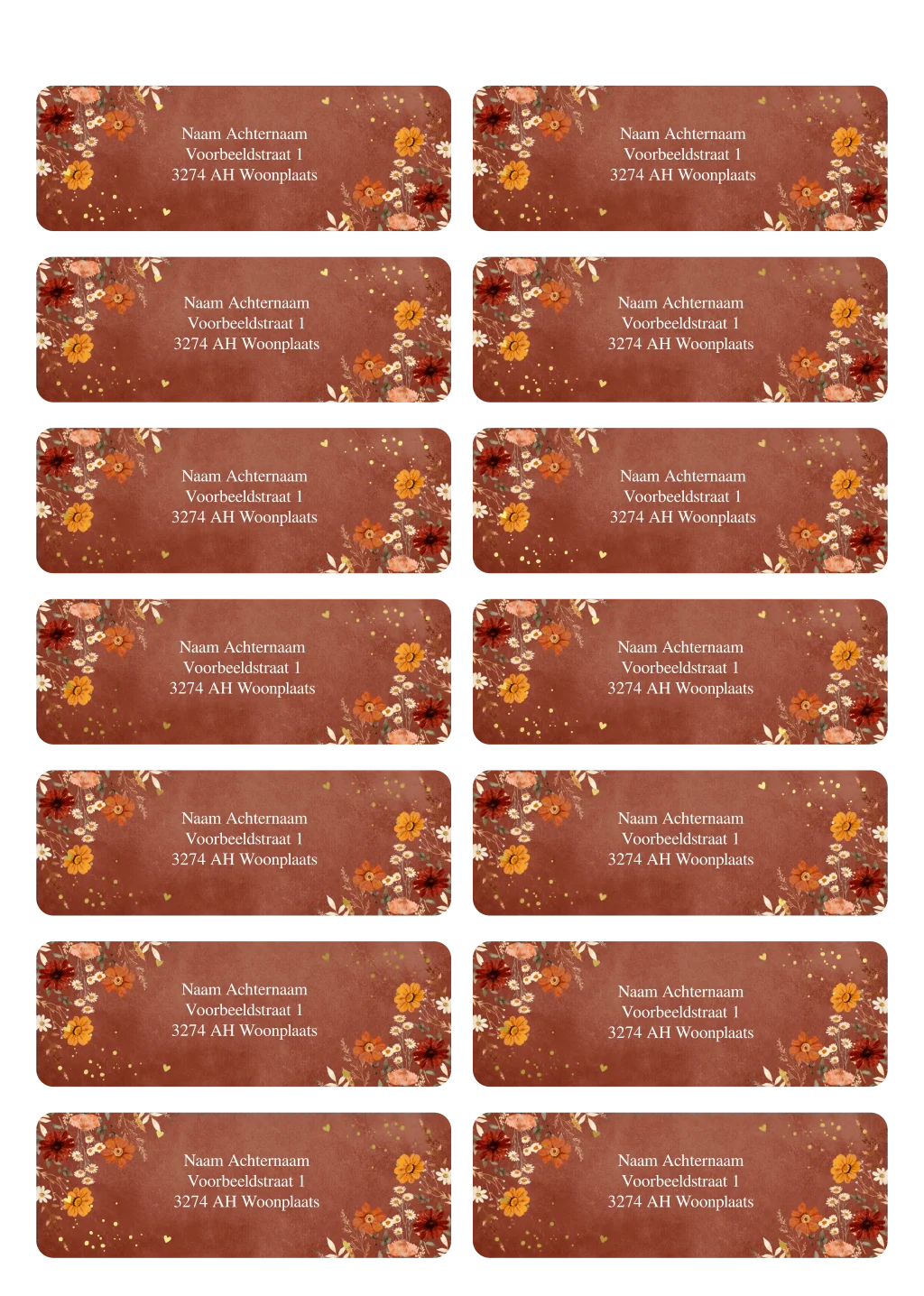 Adresstickers huwelijk bloemen roestbruin | 14 stuks 97X34 mm