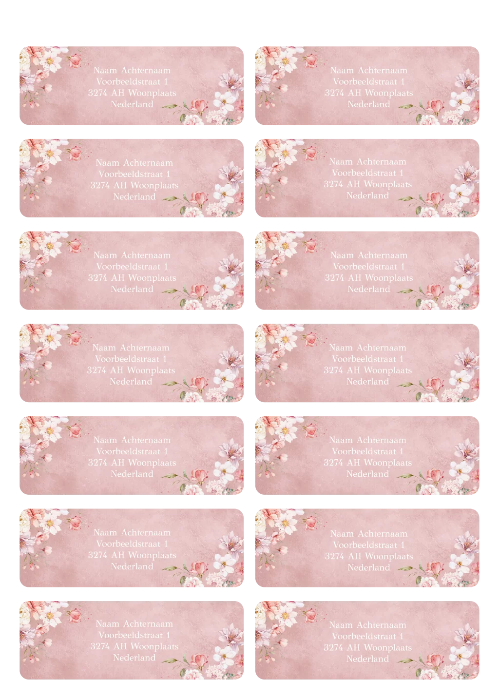 Adresstickers met bloemen roze. Plaats eenvoudig zelf alle adressen op de adresstickers. • 14 adresstickers per vel • formaat van 97x34 mm • ronde hoeken Maak het geboortekaartje helemaal af door de envelop dicht te plakken met een bijpassende sluitzegel!
