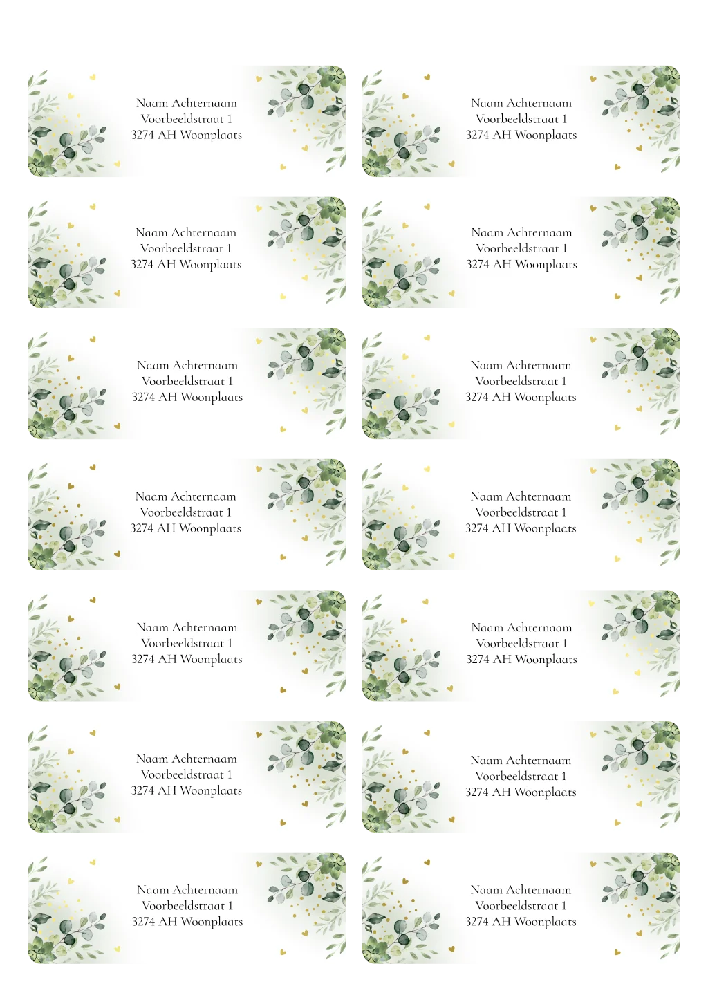 Adresstickers botanisch groen. Plaats eenvoudig zelf alle adressen op de adresstickers. • 14 adresstickers per vel • formaat van 97x34 mm • ronde hoeken