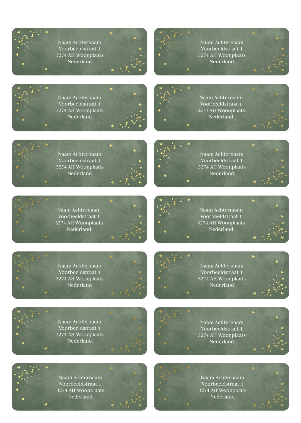 Adresstickers huwelijk groen goudfolie | 14 stuks 97X34 mm