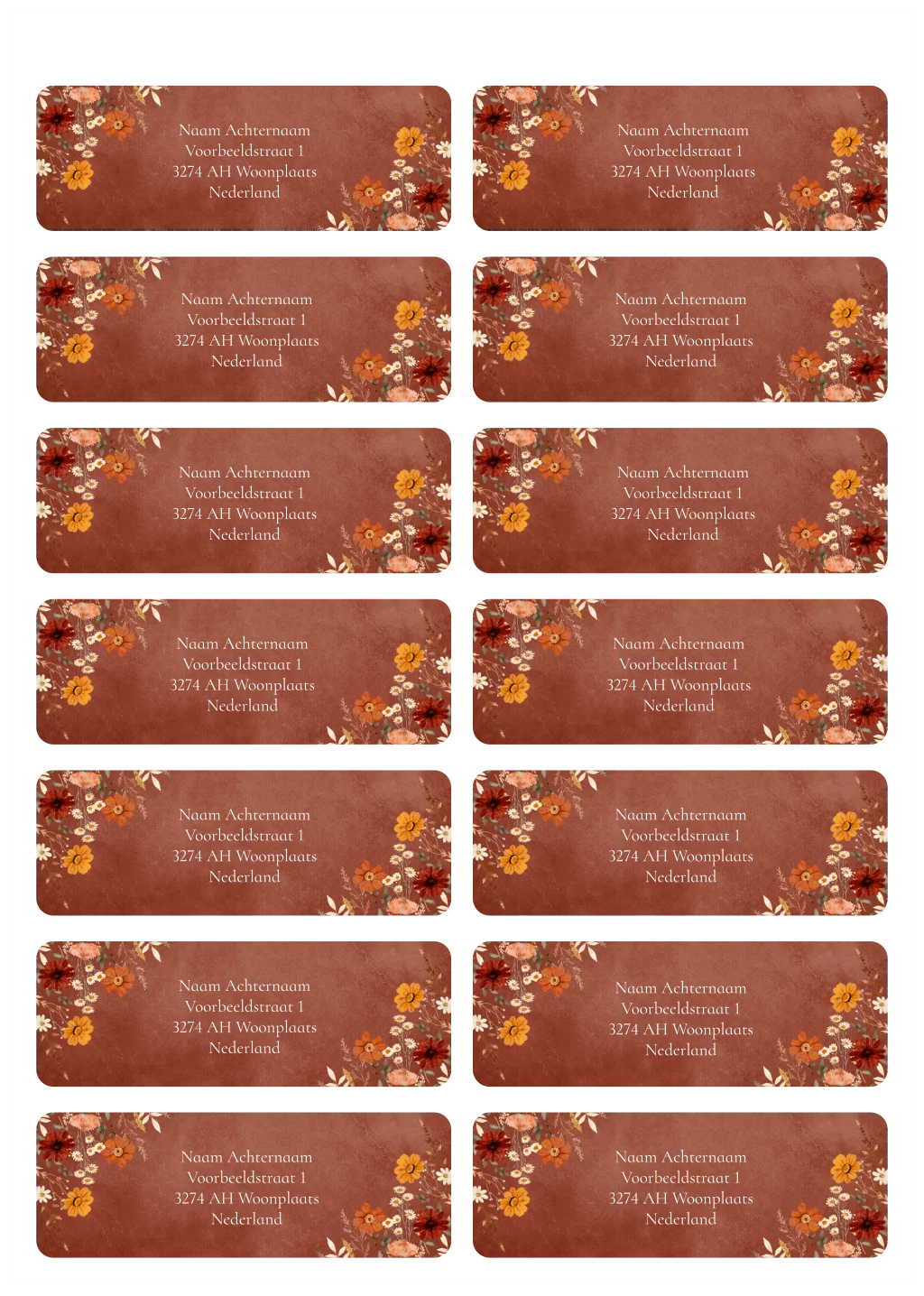 Adresstickers huwelijk bloemen roestbruin | 14 stuks 97X34 mm