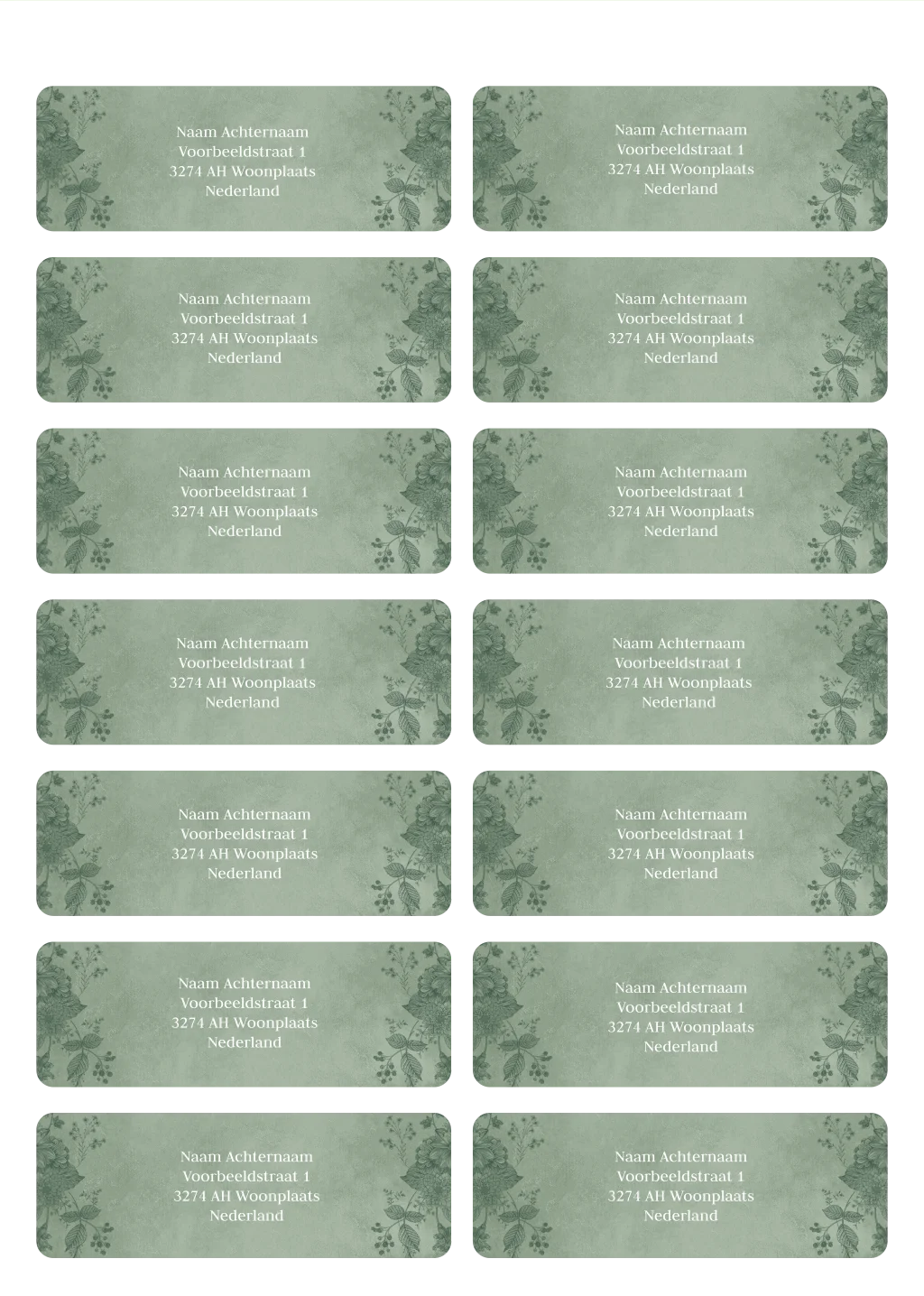 Adresstickers groen botanisch floral | 14 stuks 97X34 mm