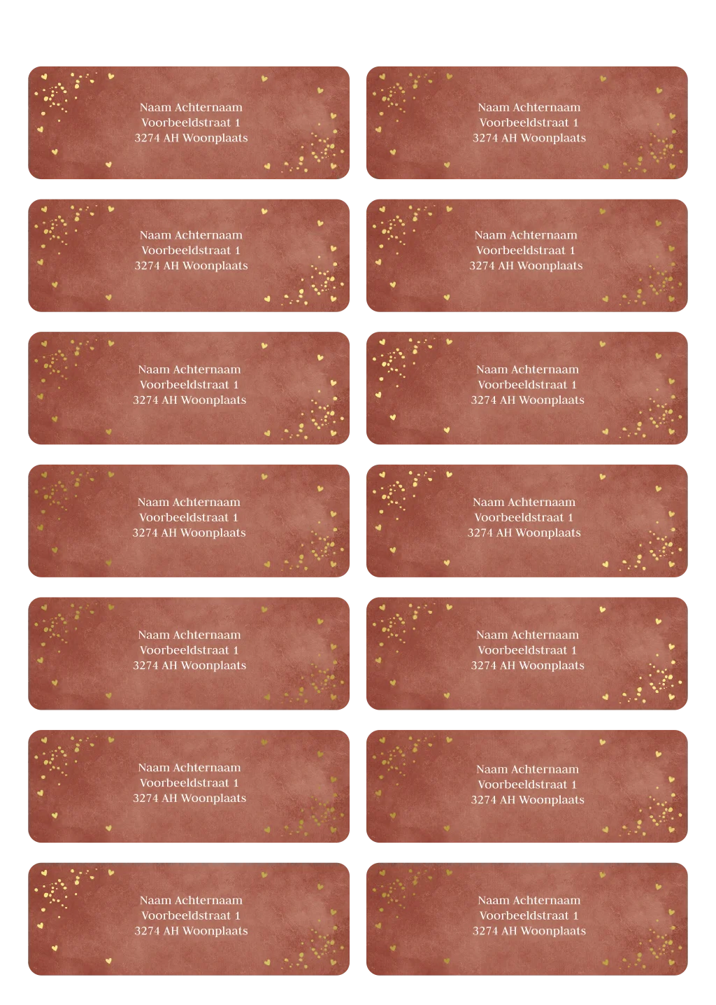 Adresstickers roestbruin met goudfolie