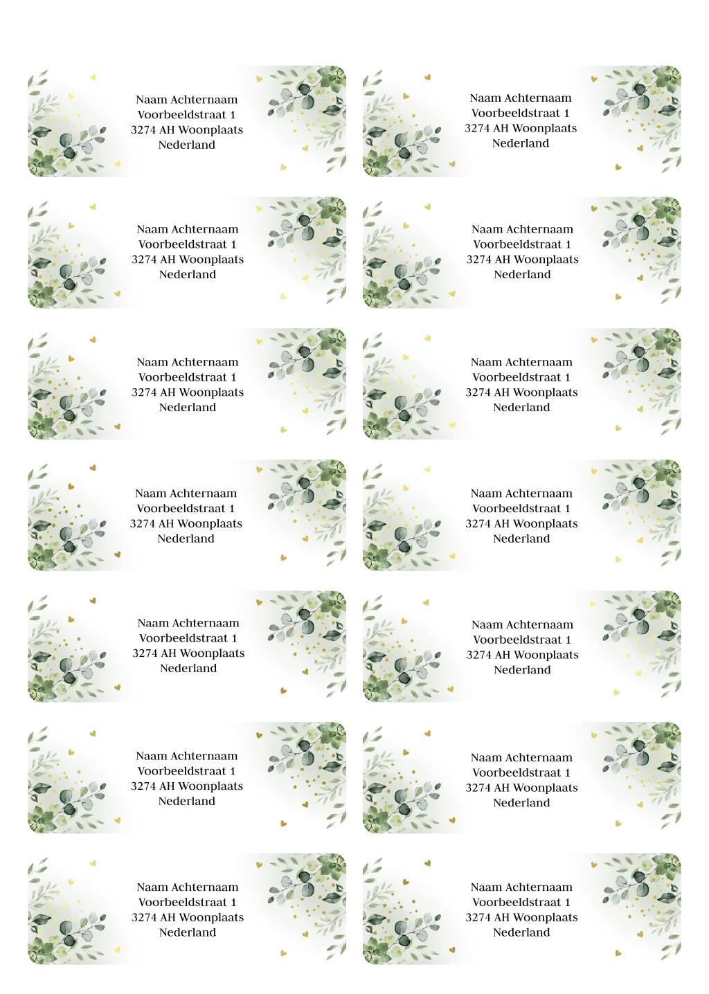 Adresstickers huwelijk groen bladeren goudfolie | 14 stuks 97X34 mm