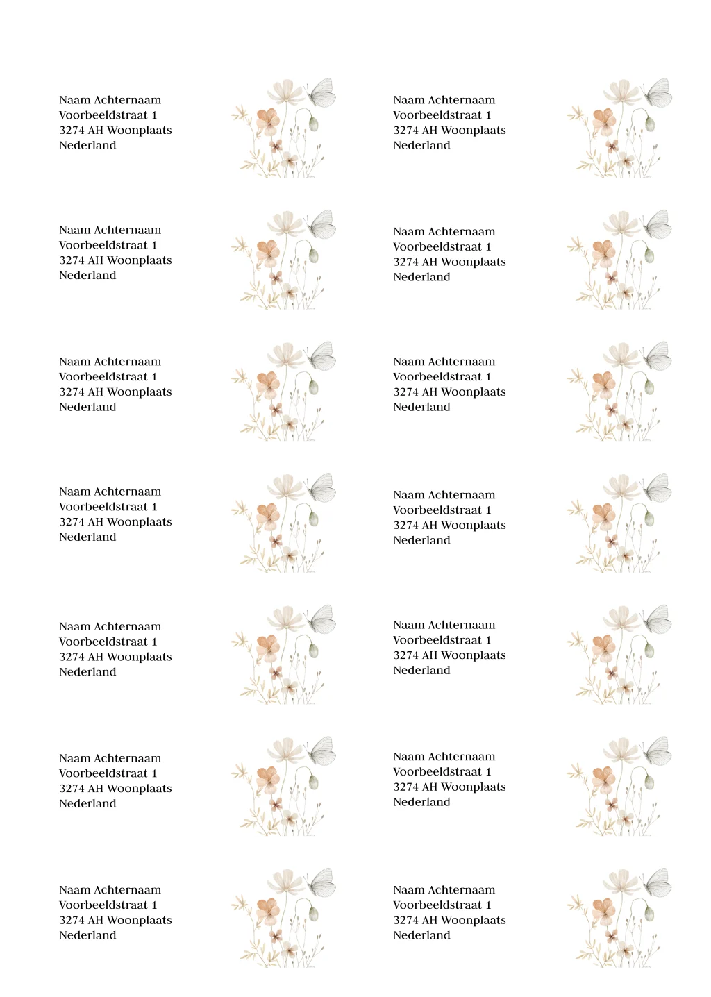 Adresstickers witte beige bloemen vlinder