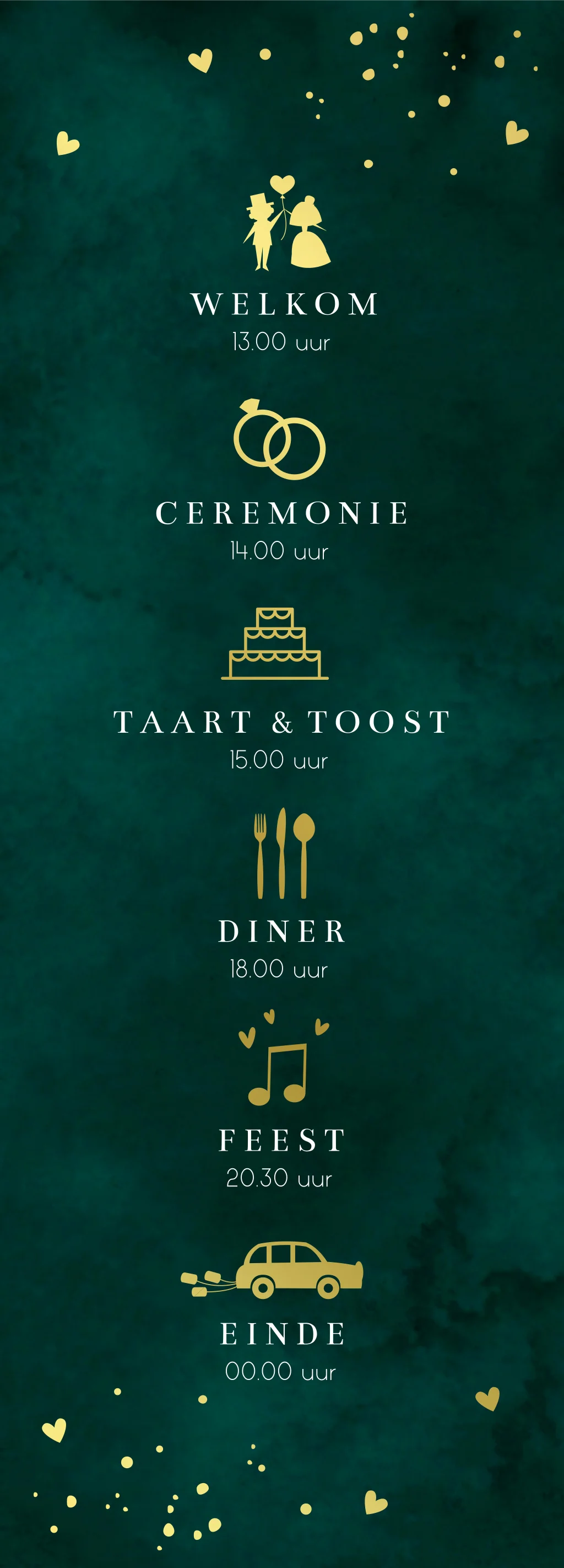 15 x 5,4 cm (3 stuks). Maak jullie trouwkaart compleet met dit elegante smalle dagprogramma kaartje! Je kunt de strip los bij de trouwkaart in de envelop stoppen of aan de trouwkaart bevestigen met een mooie paperclip.
