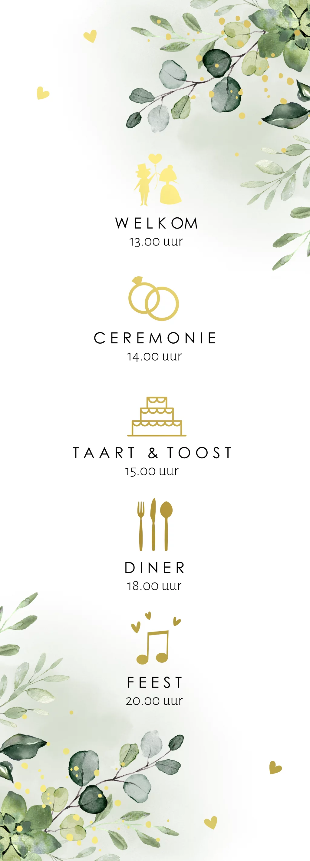 Programmakaartje bruiloft groen botanisch goud symbolen (per 3 stuks)