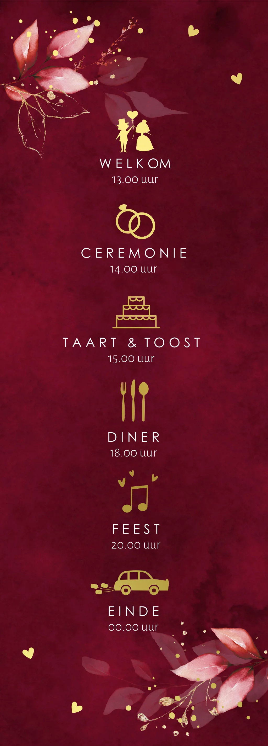Programmakaartje bruiloft rood botanisch goud symbolen (per 3 stuks)