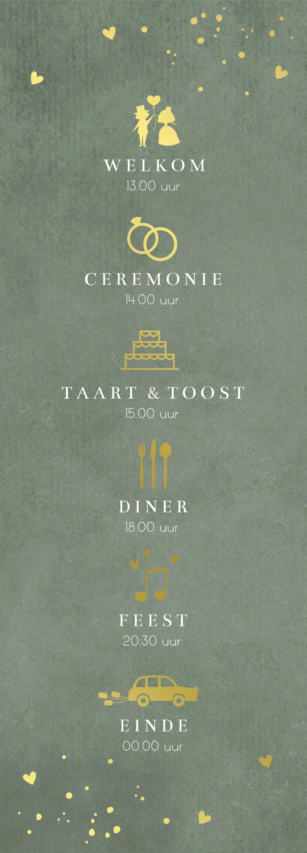 Programmakaartje bruiloft stripvorm groen goud symbolen (per 3 stuks)