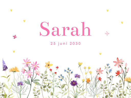 Canvasposter geboortekaartje gekleurde bloemen | 40x30 cm