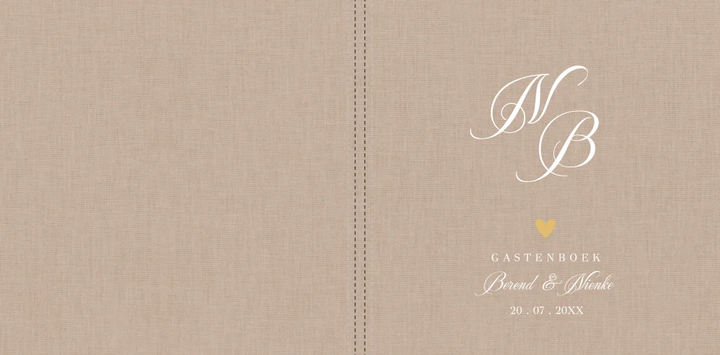 Gastenboek bruiloft beige linnenlook sierlijke letters initialen naam