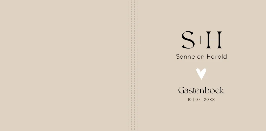 Een gastenboek in stijl van jullie trouwkaart! Dit gastenboek beige met initialen naam heeft een mooie luxe uitstraling. Goed om te weten: • Inhoud: 36 bladen, 72 blanco pagina’s. • De omslag is een glanzende harde kaft. • De voor- en achterkant kun je helemaal personaliseren naar eigen wens. • Foliedruk niet mogelijk.