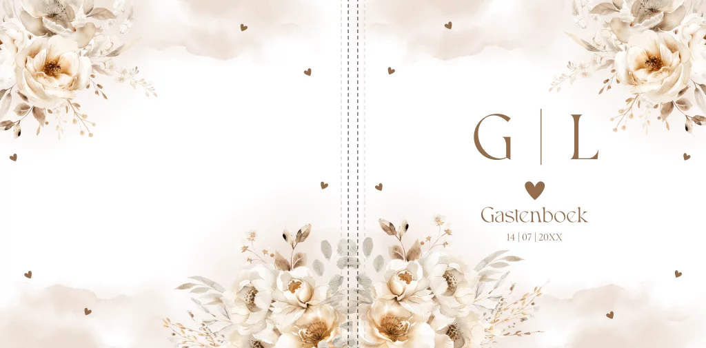 Gastenboek bruiloft bloemen beige watercolour
