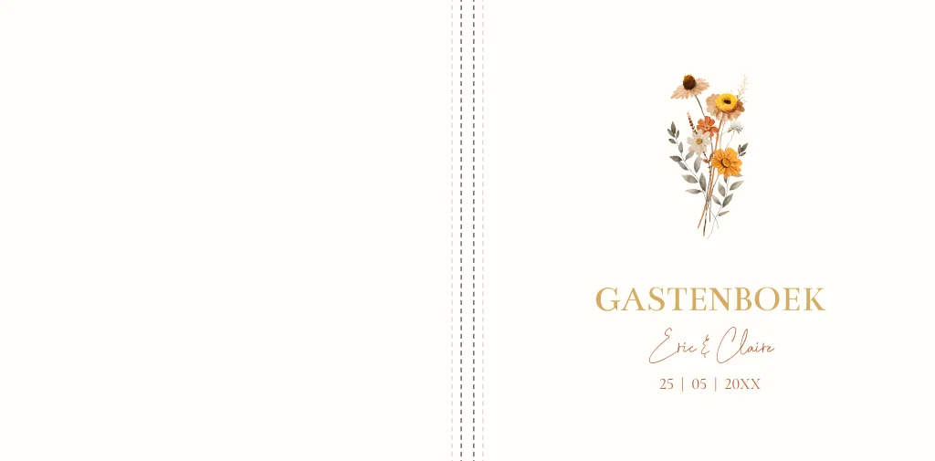 Een gastenboek in stijl van jullie trouwkaart! Dit gastenboek met bloemenboeket creme wit heeft een mooie luxe uitstraling. Goed om te weten: • Inhoud: 36 bladen, 72 blanco pagina’s. • De omslag is een glanzende harde kaft. • De voor- en achterkant kun je helemaal personaliseren naar eigen wens. • Foliedruk niet mogelijk.