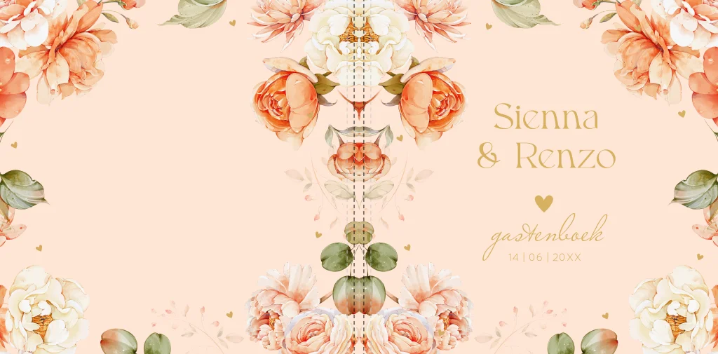 Gastenboek bruiloft bloemen peach watercolour
