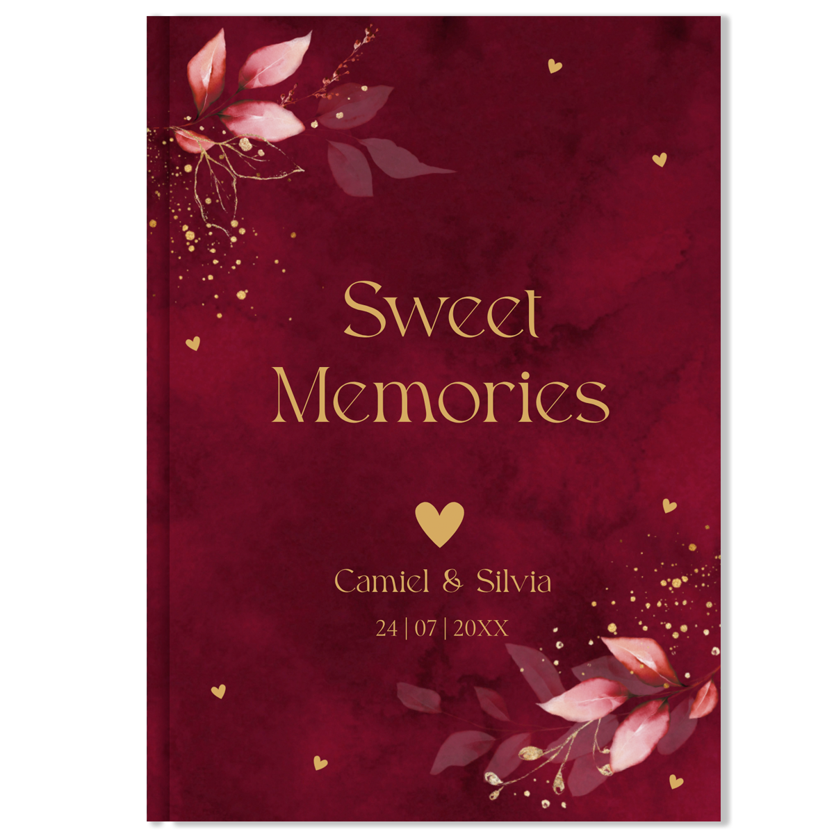 Een gastenboek in stijl van jullie trouwkaart! Dit gastenboek met watercolour bladeren rood heeft een mooie luxe uitstraling. Goed om te weten: • Inhoud: 36 bladen, 72 blanco pagina’s. • De omslag is een glanzende harde kaft. • De voor- en achterkant kun je helemaal personaliseren naar eigen wens. • Foliedruk niet mogelijk.