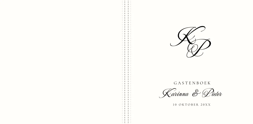 Gastenboek bruiloft zwart wit sierlijke letters initialen naam