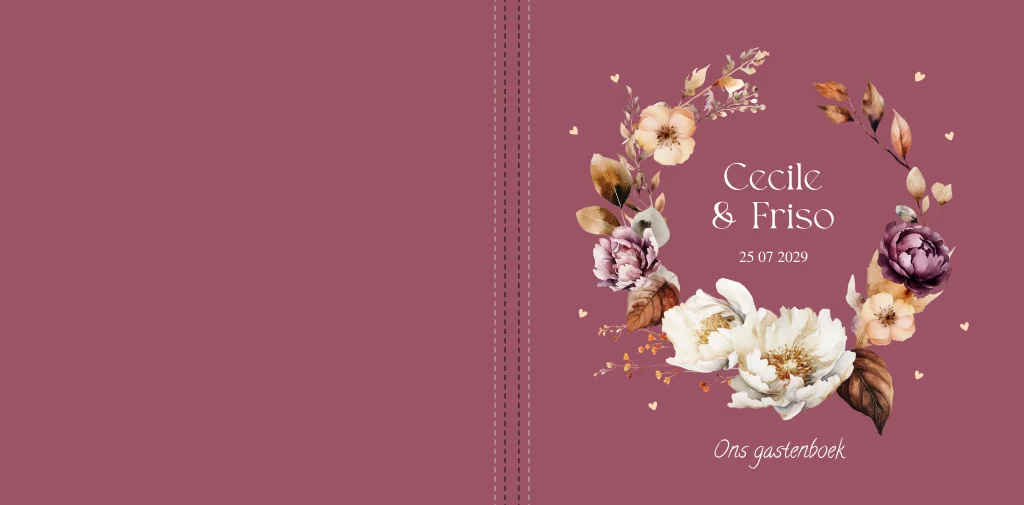 Gastenboek bruiloft bloemenkrans aubergine