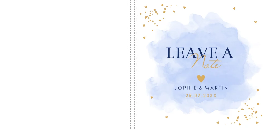 Een gastenboek in stijl van jullie trouwkaart! Dit gastenboek blauw met watercolour mintgroen heeft een mooie luxe uitstraling. Goed om te weten: • Inhoud: 36 bladen, 72 blanco pagina’s. • De omslag is een glanzende harde kaft. • De voor- en achterkant kun je helemaal personaliseren naar eigen wens. • Foliedruk niet mogelijk.