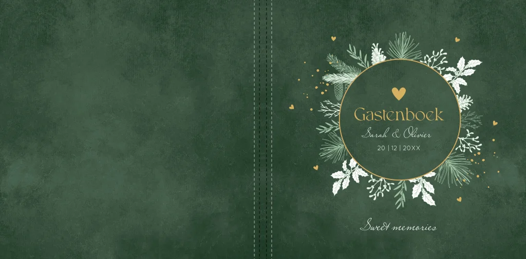 Gastenboek bruiloft winter wedding groen kersttakjes