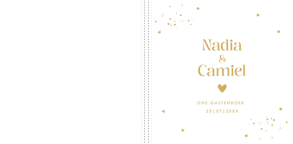 Een gastenboek in stijl van jullie trouwkaart! Dit gastenboek wit met mooie typografie heeft een mooie luxe uitstraling. Goed om te weten: • Inhoud: 36 bladen, 72 blanco pagina’s. • De omslag is een glanzende harde kaft. • De voor- en achterkant kun je helemaal personaliseren naar eigen wens. • Foliedruk niet mogelijk.