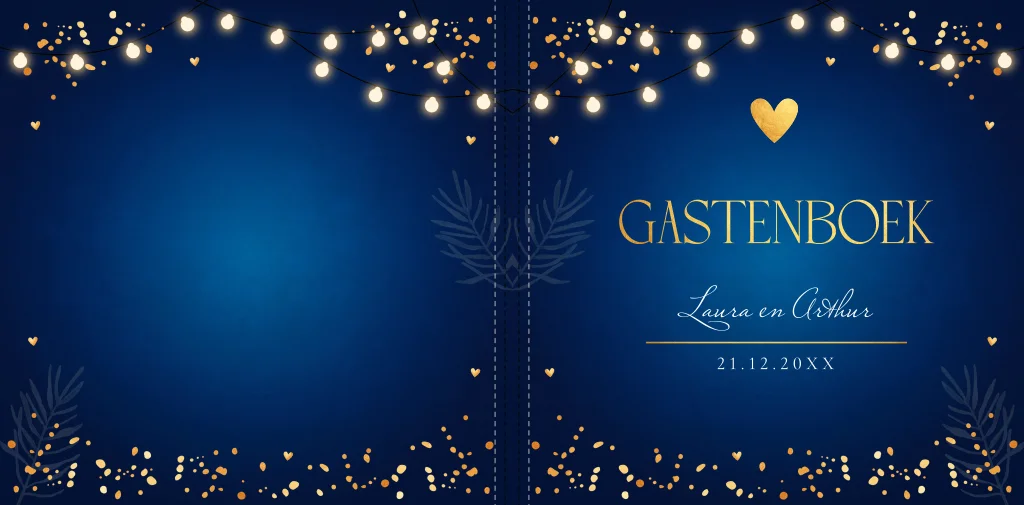 Gastenboek blauw kerst lampjes hartje goudlook