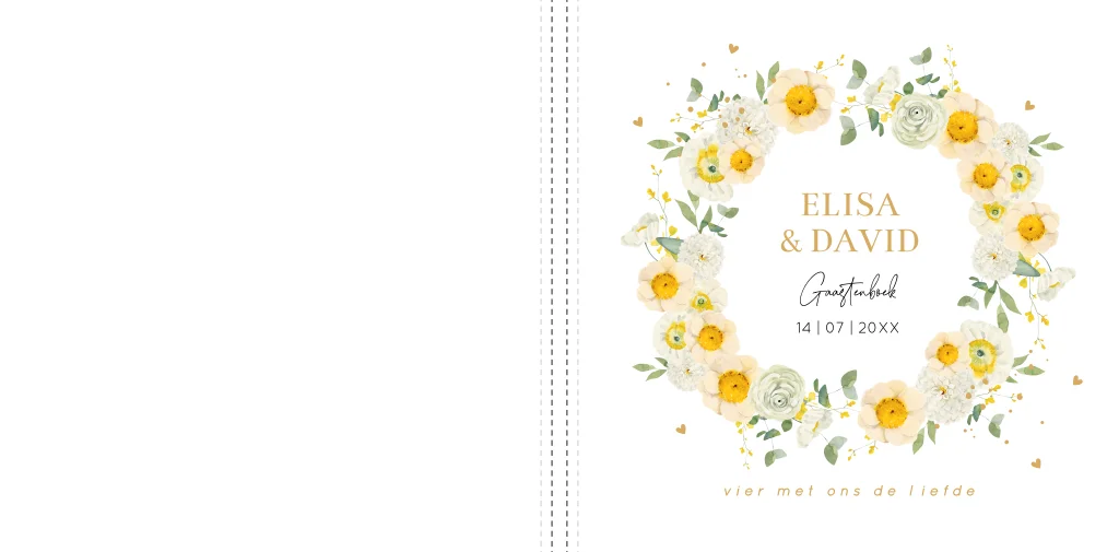 Gastenboek huwelijk bloemenkrans geel