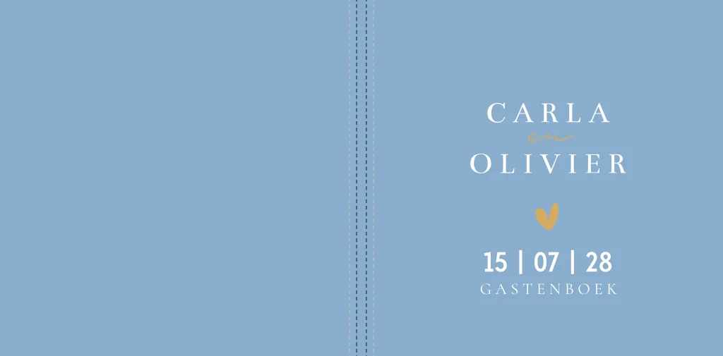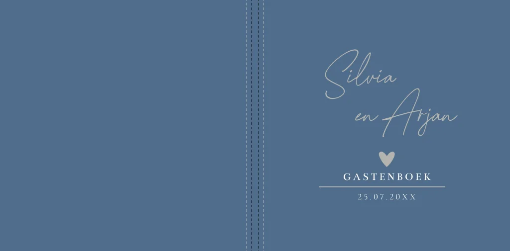 Een gastenboek in stijl van jullie trouwkaart! Dit gastenboek lichtblauw met mooie typografie heeft een mooie luxe uitstraling. Goed om te weten: • Inhoud: 36 bladen, 72 blanco pagina’s. • De omslag is een glanzende harde kaft. • De voor- en achterkant kun je helemaal personaliseren naar eigen wens. • Foliedruk niet mogelijk.