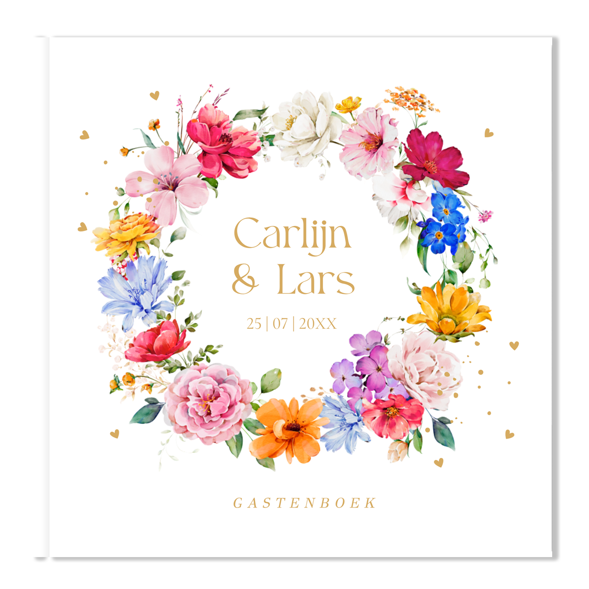 Gastenboek huwelijk kleurrijke bloemenkrans roze