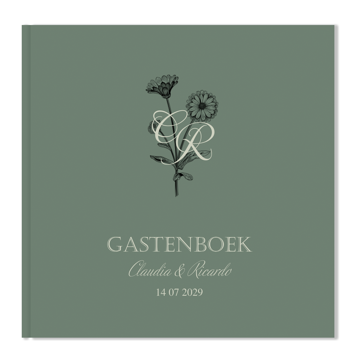 Gastenboek huwelijk groen botanisch bloemenboeket
