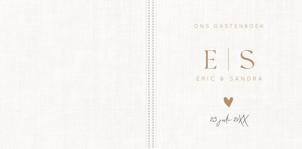 Een gastenboek in stijl van jullie trouwkaart! Dit gastenboek met linnenlook wit heeft een mooie luxe uitstraling. Goed om te weten: • Inhoud: 36 bladen, 72 blanco pagina’s. • De omslag is een glanzende harde kaft. • De voor- en achterkant kun je helemaal personaliseren naar eigen wens. • Foliedruk niet mogelijk.