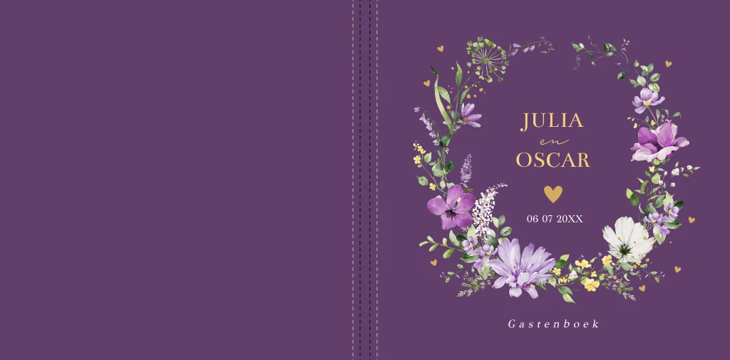 Gastenboek huwelijk paars bloemenkrans