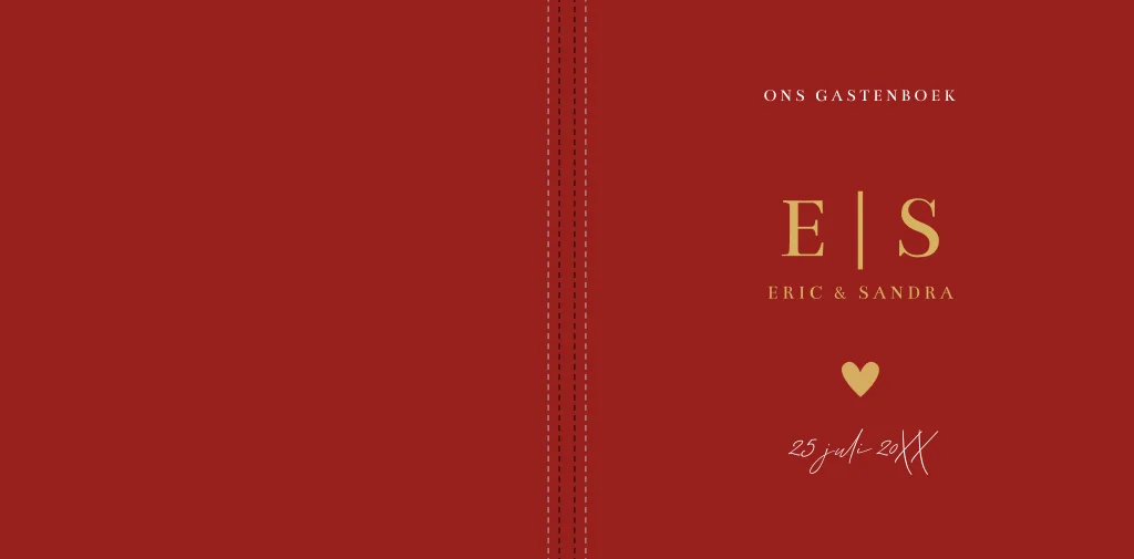 Een gastenboek in stijl van jullie trouwkaart! Dit gastenboek rood heeft een mooie luxe uitstraling. Goed om te weten: • Inhoud: 36 bladen, 72 blanco pagina’s. • De omslag is een glanzende harde kaft. • De voor- en achterkant kun je helemaal personaliseren naar eigen wens. • Foliedruk niet mogelijk.