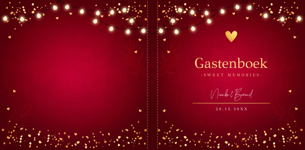 Gastenboek rood kerst lampjes hartje goudlook