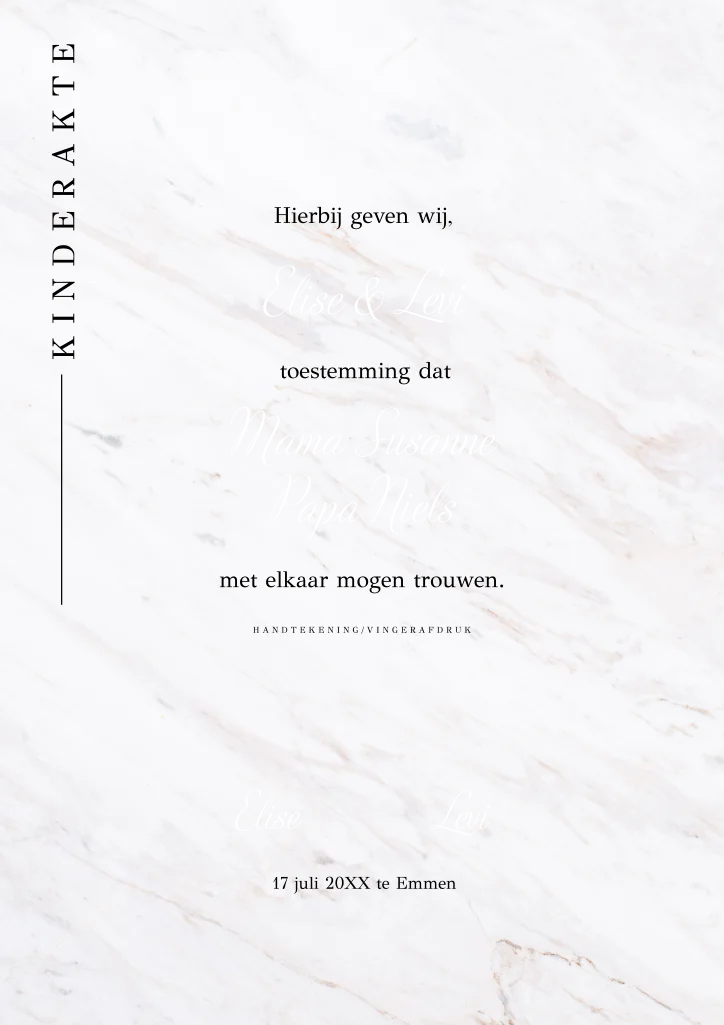 Kinderakte helemaal in stijl van jullie trouwkaart.